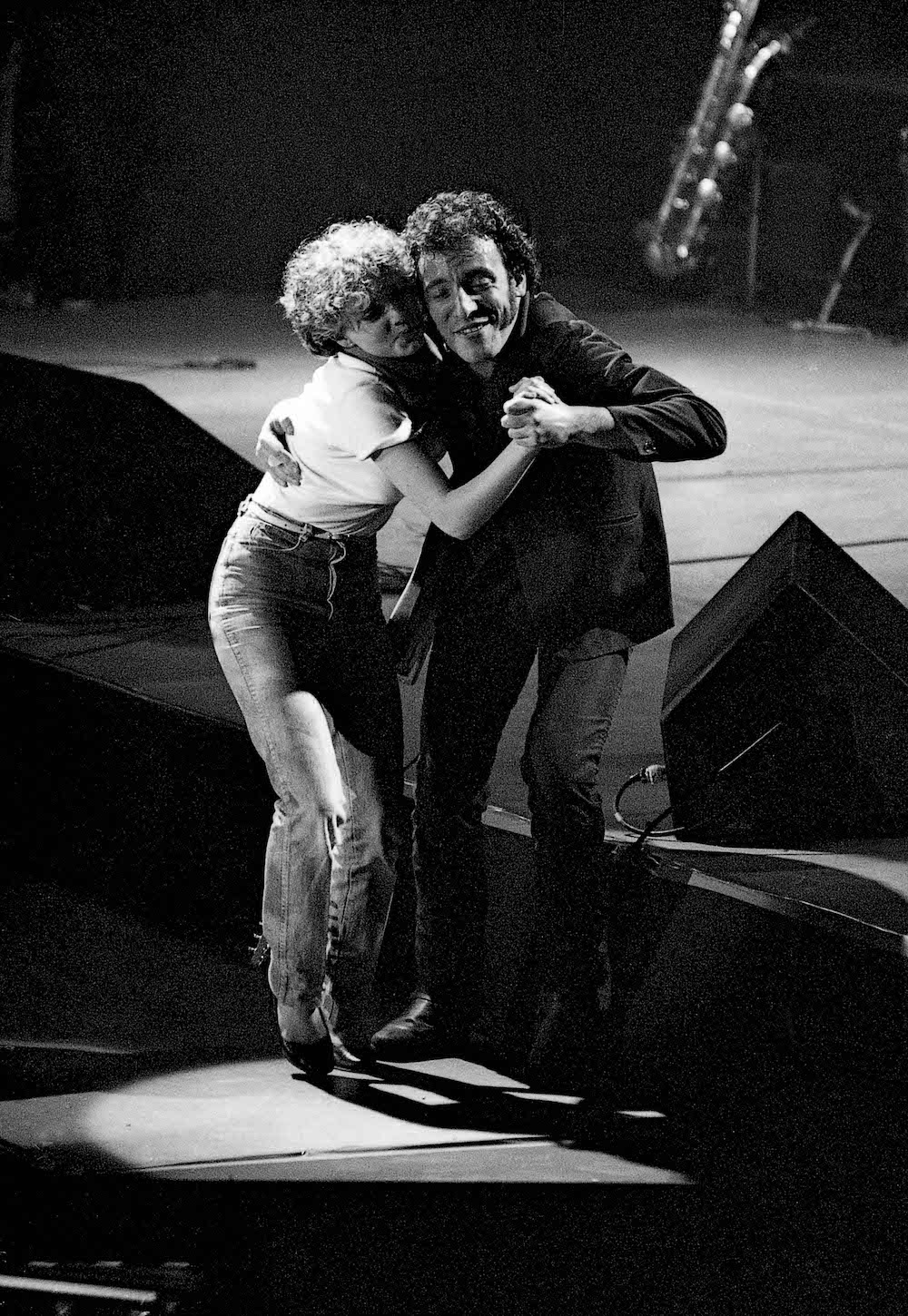 Springsteen did dancing in the dark midway through the show, so by that time he was good and sweaty and the crowd was worked into a frenzy.